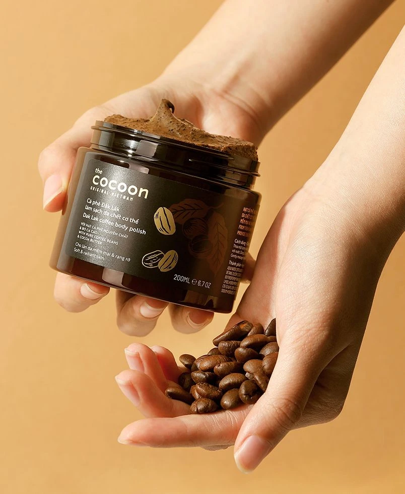 Exfoliating Dak Lak Cocoon coffee for soft and radiant skin