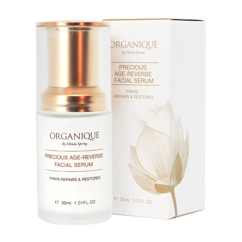 Organique Age-Reverse Facial Serum is anti-aging essence with Australian Wild Rosella flower extract, grape seeds rich in antioxidants and specialized amino acid chains that promote deep penetration, collagen regeneration.