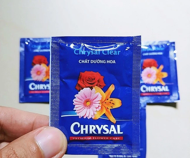 Chrysal is considered a long -lasting flower.Powder pills are closed into small packages.Each pack with 0.5 liters of water is used for long -lasting flowers, applicable to cutting flowers.Price 11,000 VND/pack.