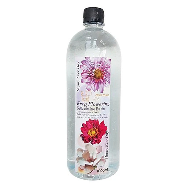 This is a flower arrangement with a bottle of 1000ml to help fresh flowers for 8-15 days depending on the type.Safety products are not toxic.This type of water helps the cutting flowers can continue to absorb water to nourish branches, leaves, flowers, keeping flowers long, long withered due to dehydration.Price 26,000 VND/bottle.