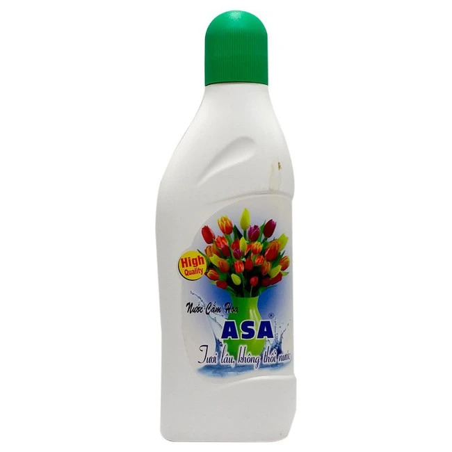 Asa flower arrangement is an environmentally friendly product, making the flowers fresh twice as long as it does not need to change the water and cut the root daily.Asa flowering water helps the water in the bottle do not smell like the usual water.Price 28,000 VND/bottle.