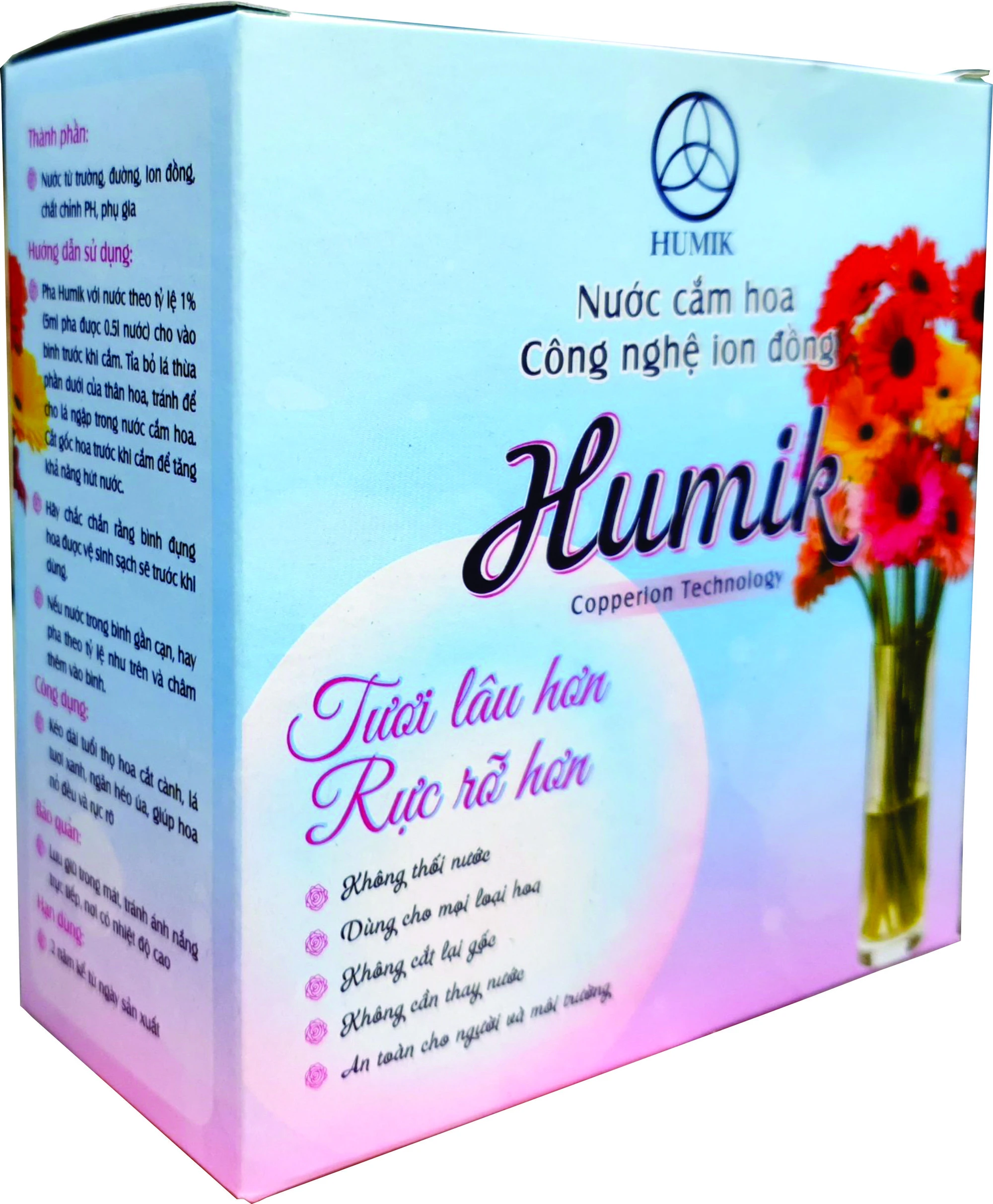 The most prominent feature of the Humik solution is the ability to revive withered flowers, with magnetic water components and copper ions.If you intervene and soak in water in time, you will have the opportunity to extend the life of the flower.The solution also prevents the phenomenon of dehydration in flowers, thereby reducing the phenomenon of wilting.The dilute ratio is 2 solution covers with 1l of water, and you need to change water after 3-5 days of use.Price: 150,000 VND/pack.
