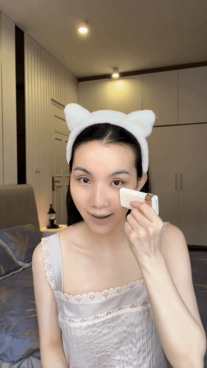 Before her skin care, she did not forget to add filtered water to her body.This is also a drink that Thuy Lam always prioritizes top priority to have a shiny, radiant skin.Like many other sisters, toner is still an indispensable first step in the skin cleansing.In the second step, she used Fi -vitamin C serum to fight aging as well as darkening, helping the skin become white, evenly colored and prevent harmful agents from the sun.