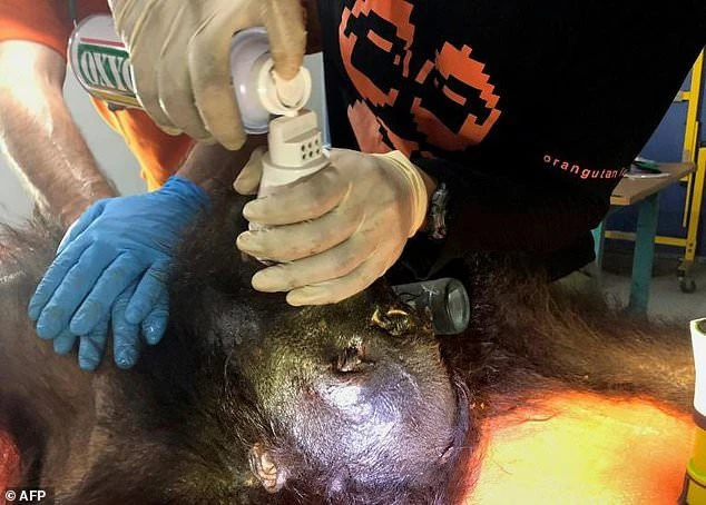 Due to the severe injury, this orangutan could not survive.