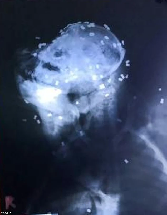 The film shows 74 air guns in the head, 17 in the chest and dozens of other pieces on the orangutan's limbs.