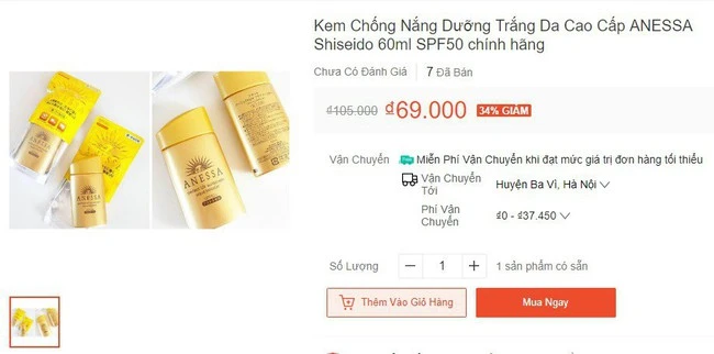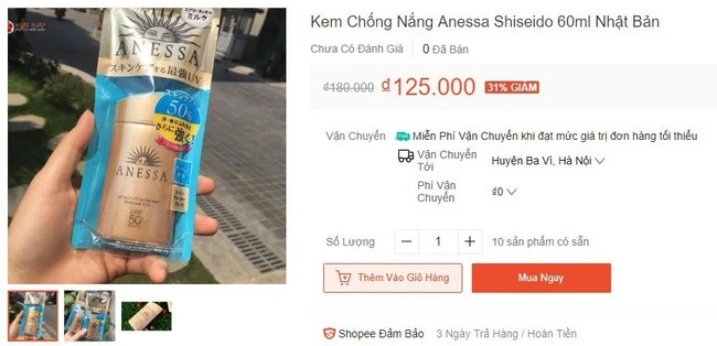 This type of sunscreen costs 625,000 VND for a 60ml bottle, but many sellers are many times cheaper than the price