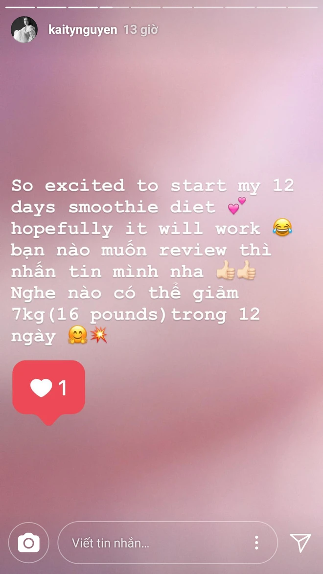 As for the "em not 18" Kaity Nguyen, I started drinking smoothie from yesterday.And it seems that she is quite excited and expects the results of this method.