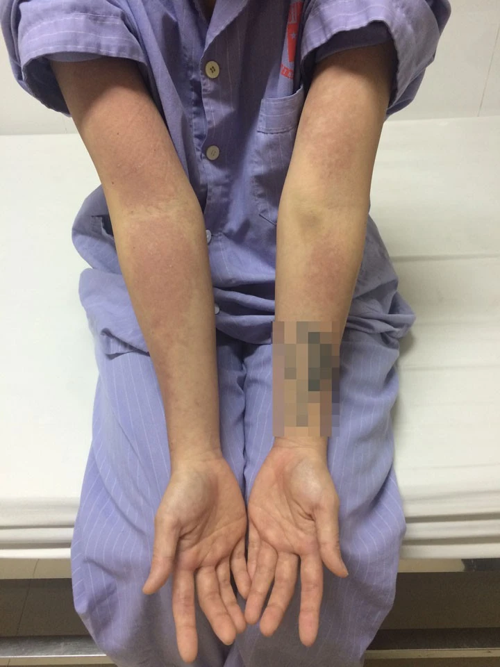On June 18, she started using the product, one day later the skin showed a slight swelling, then peeled off a thin layer of skin.Seeing whiter skin, Ms. P continued to use.About 10 days later, the skin appeared red again, then Ms. P had a fever, the rash blushed all over her face.