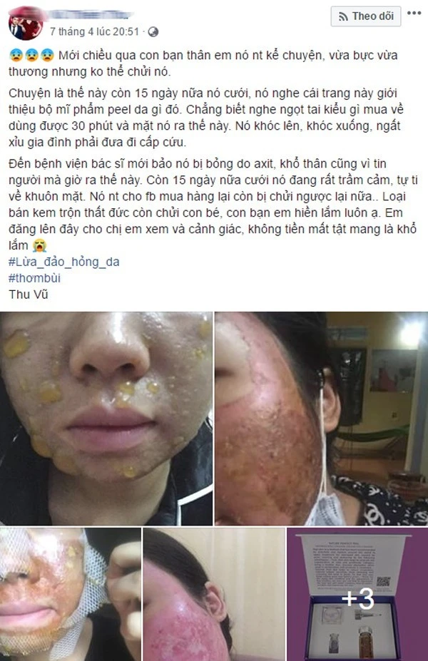 When she went to the hospital, the doctor examined and said the girl had acid burns.From there to the wedding was only very short, she was extremely worried and inferior.The Facebook account holder then also warned that Peel skin from chemicals is not guaranteed, avoiding money loss.