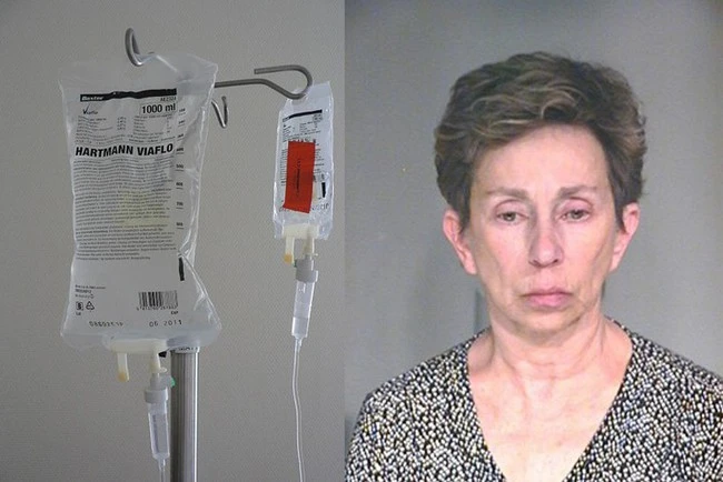 When entering the hospital room, nurses caught Vogel were pumping brown solution into her husband's bag.The assessment shows that it is ... feces.
