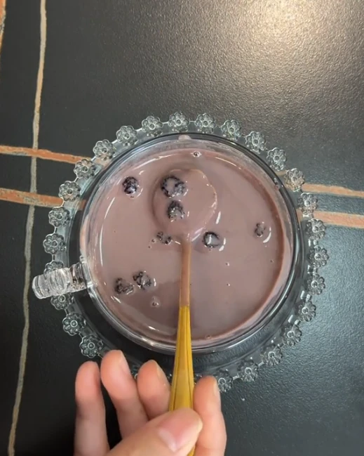 After the processing is complete, the milk dish is smooth and beautiful reddish brown, wait until the milk cools the nomadic rice to let the black goji berries come to drink.You can also add condensed milk to create a sweet sweetness.