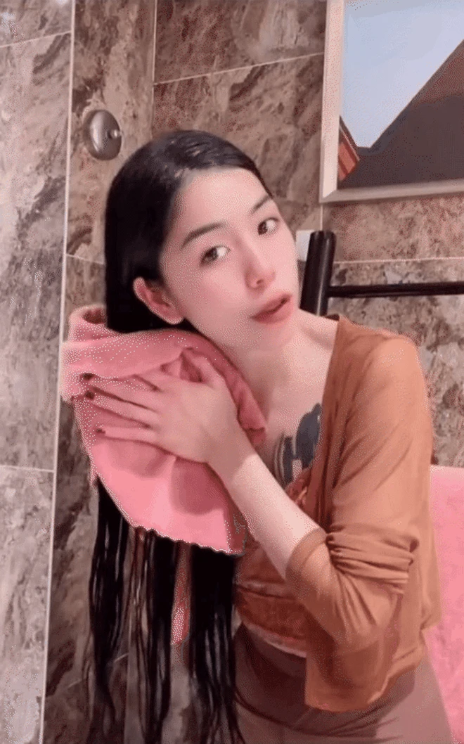 - Finally, use a towel to absorb hair and only dry 70%:When drying her hair, Hang Du nomadic is also very gentle and thorough, she only uses a towel to dry her hair, absolutely not wiping her hands or crushing to avoid dryness, split ends and weak hair roots.To the drying step, Hang also dried at cool temperatures and only dried up to 70%, then she let her hair dry naturally.