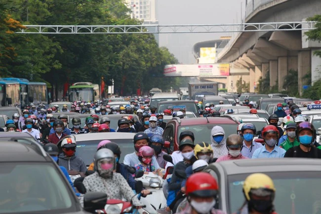 Recognizing the first day of the week, people returned to work, some roads and streets became "black spots" in Hanoi.