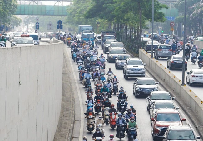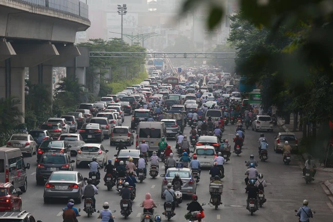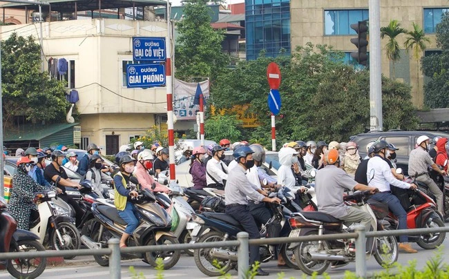 The section through Giai Phong intersection, Dai Co Viet, the means also had to wait to move.