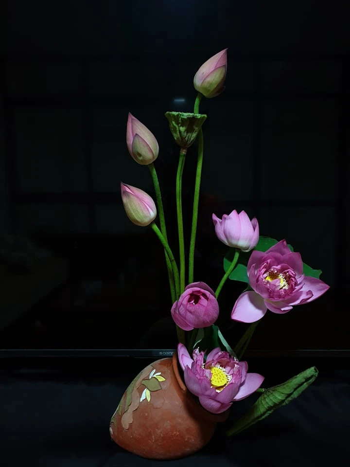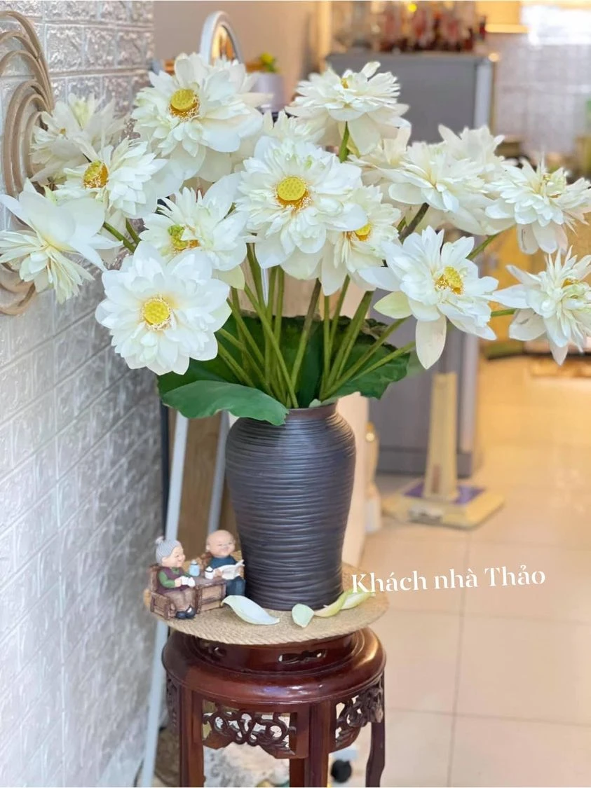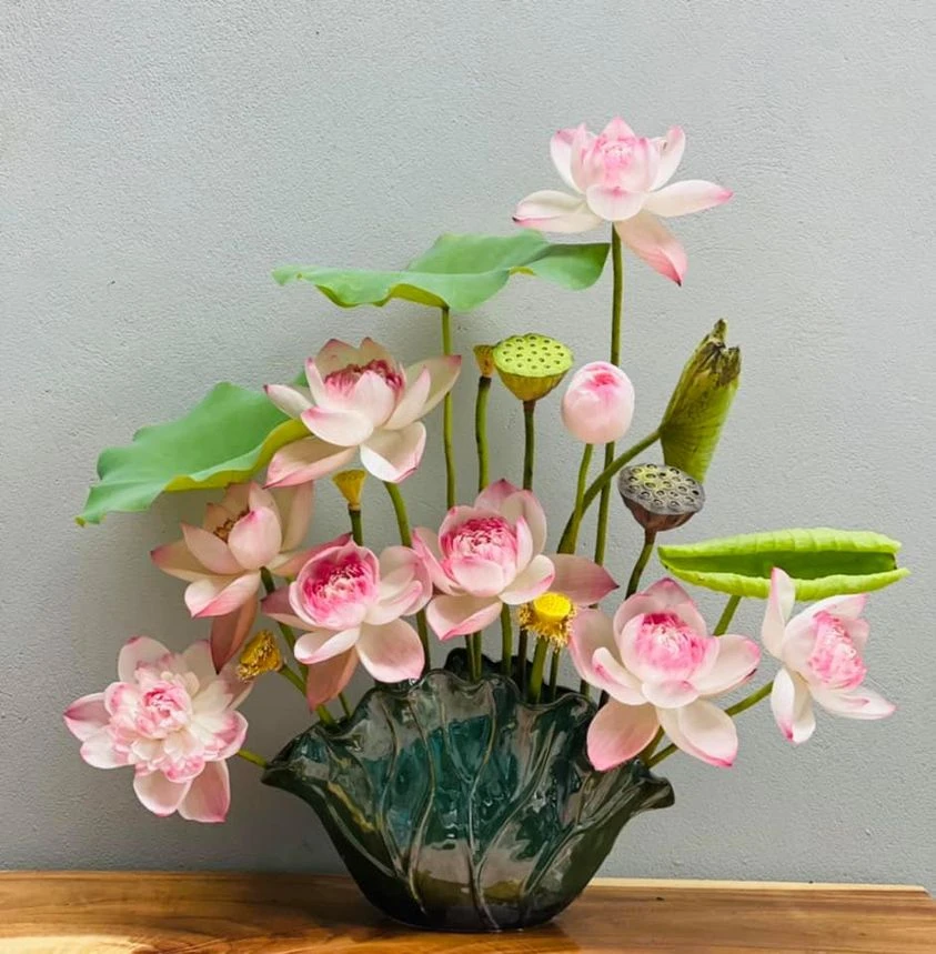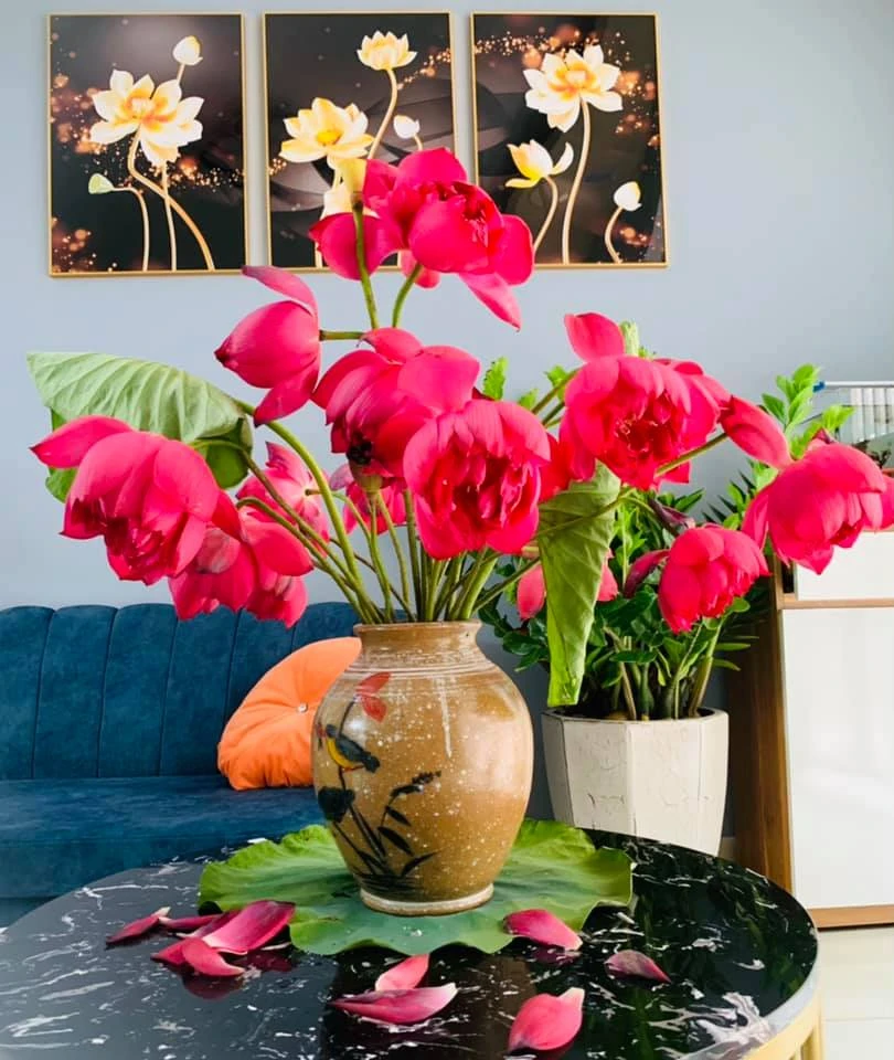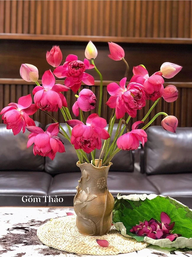 For her Nhu Trang, she always believes in choosing Bat Trang ceramics.Because according to her, Sen is the national flower, so it is plugged into a ceramic pot with national culture to create a standard, sophisticated and appropriate combination.