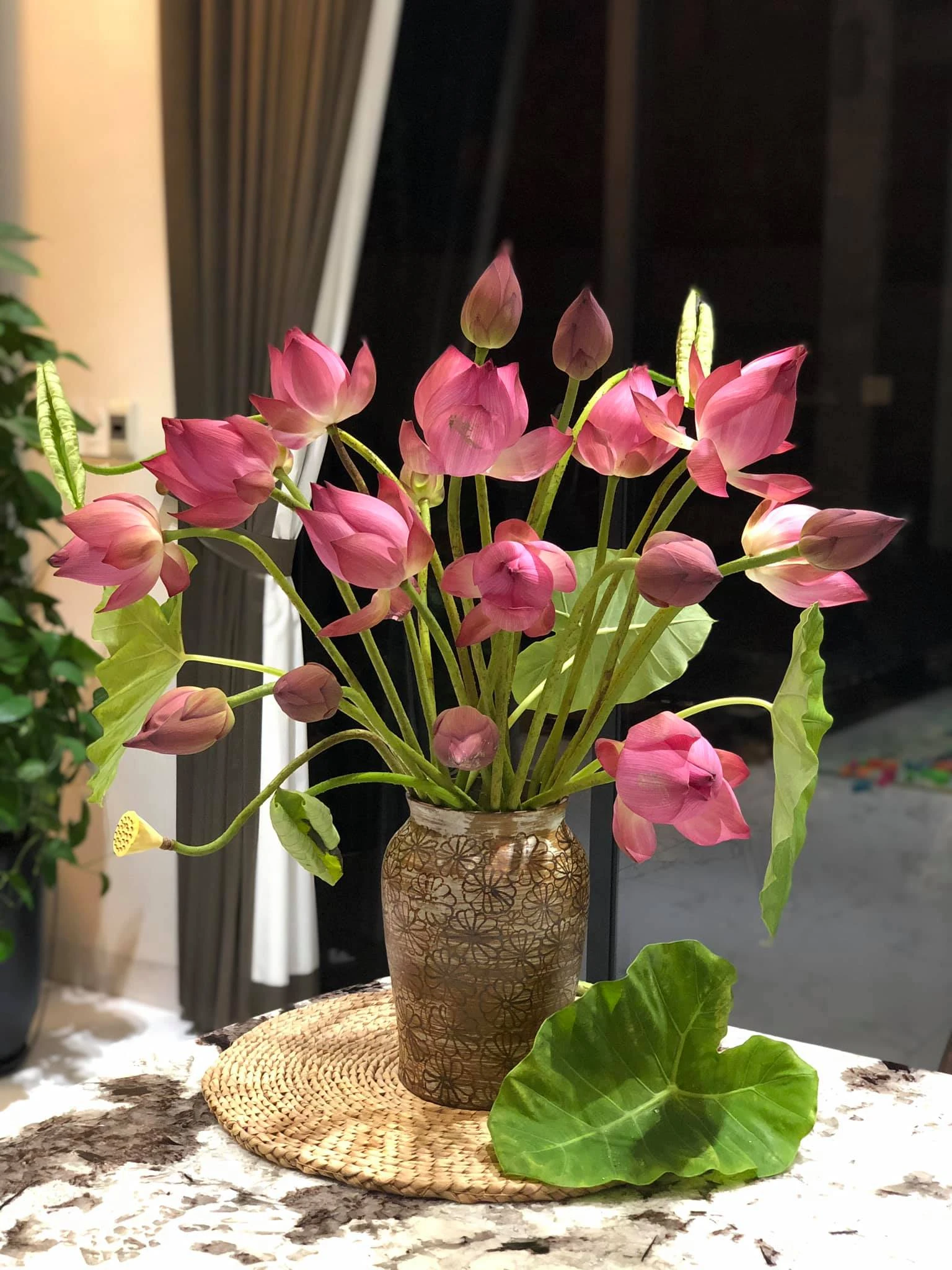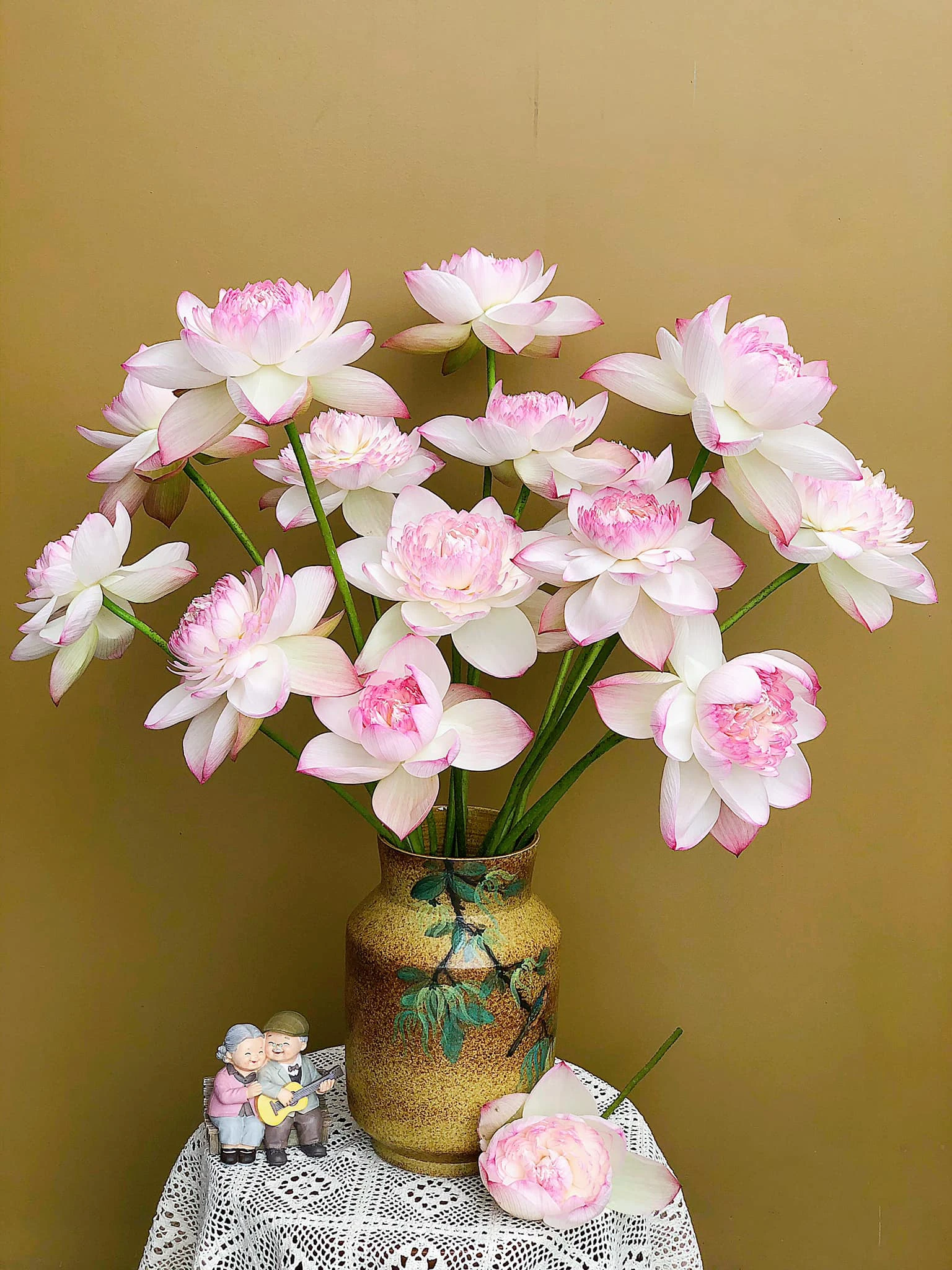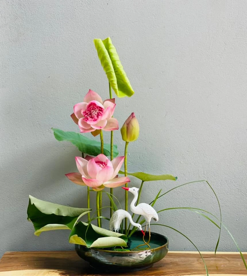 For her Nhu Trang, she always believes in choosing Bat Trang ceramics.Because according to her, Sen is the national flower, so it is plugged into a ceramic pot with national culture to create a standard, sophisticated and appropriate combination.