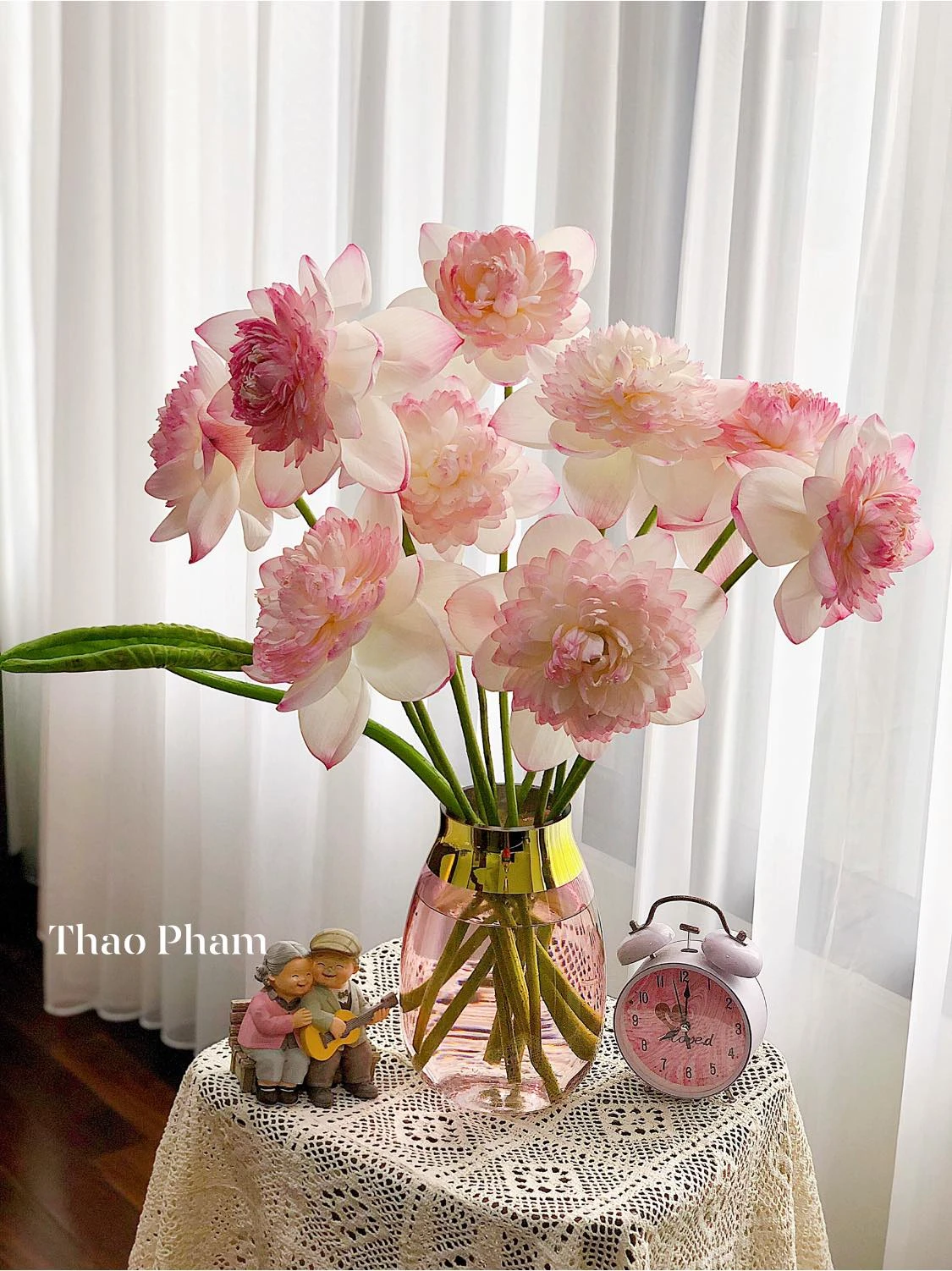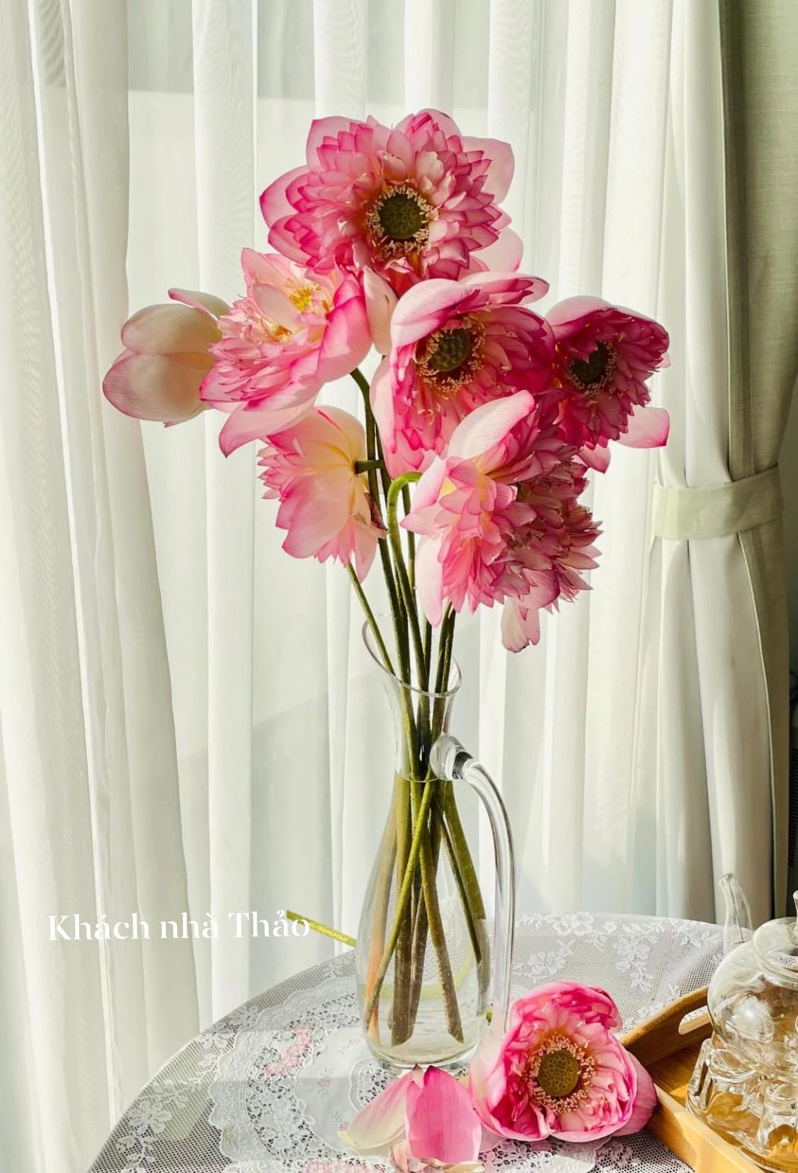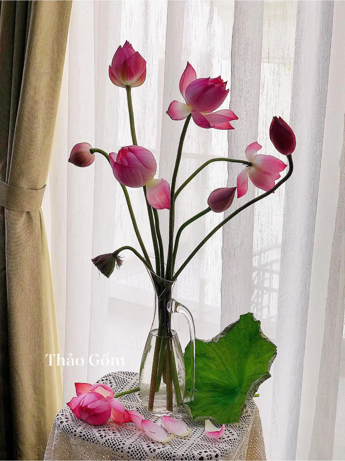 In addition, Thao also uses high -class glass vase to plug the lotus, creating a sense of lightness and soaring.