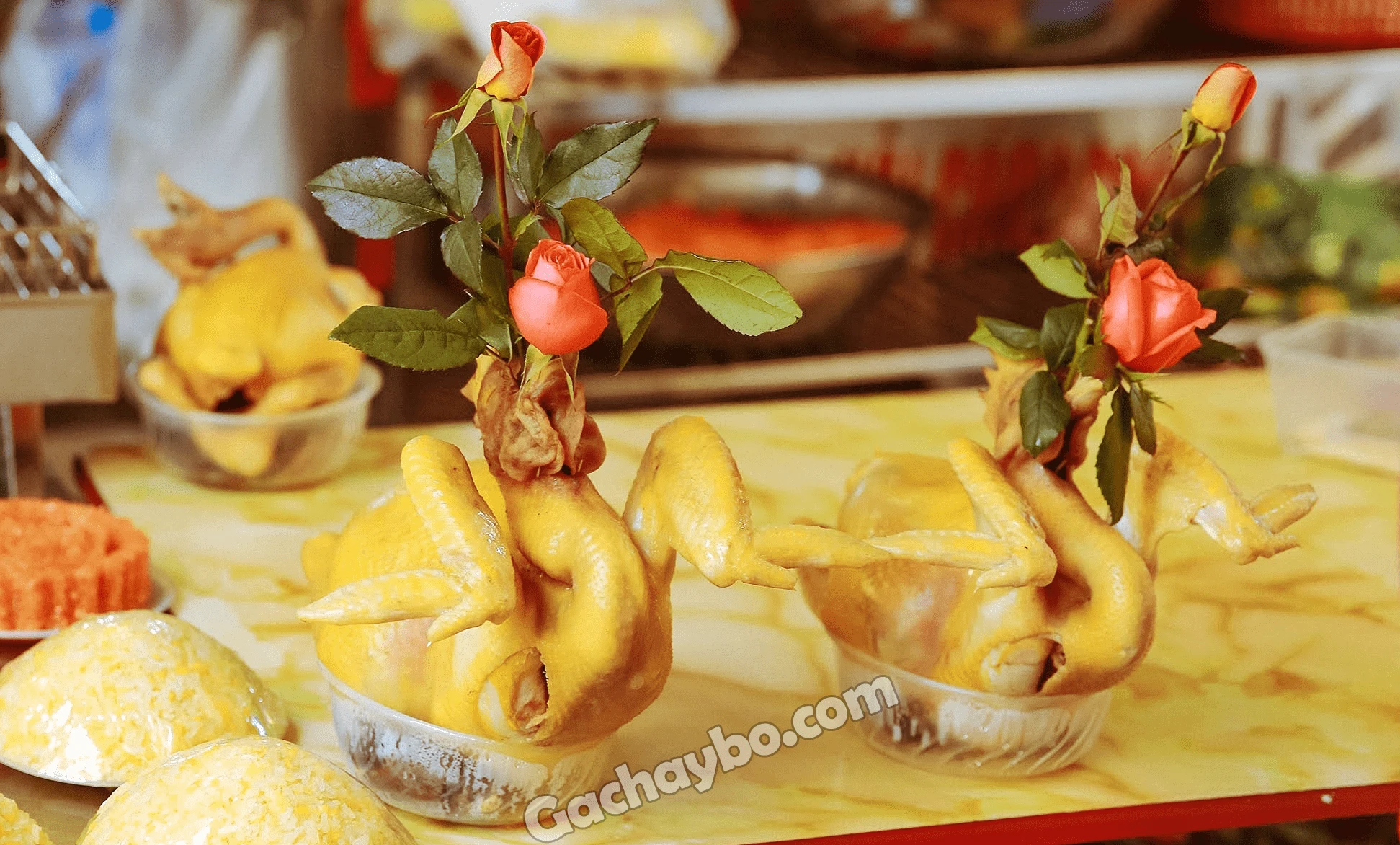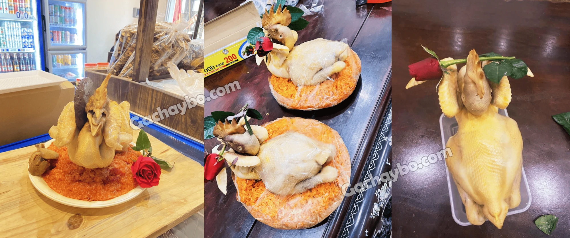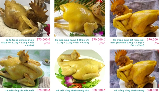 Tet comes home many things, women just put offered chickens here for convenience.Chicken can be prepared or processed according to demand, beautifully presented with decorative fresh flowers.Women who belong to the "hate the kitchen" keep buying and guaranteeing to score with their mother -in -law in terms of aesthetics.