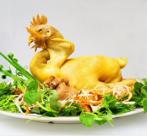 This is a shop specializing in selling boiled chicken, plump, white meat is beautifully shaped.Chicken is chosen as the root with delicious meat, large hens weighing from 1.4 - 1.6kg/head, large rooster weighing more than 2kg.Chicken is placed in a beautifully designed container, sold in a combo with delicious salad and porridge, extremely convenient for preparing offerings on Tet holiday.