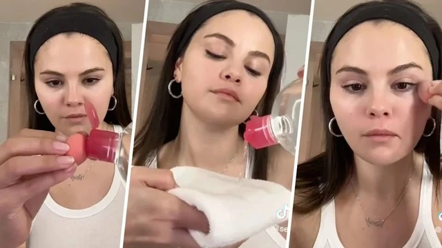 Selena Gomez begins the cleansing process with makeup remover.But instead of using conventional makeup remover products such as water/makeup remover or cleanser, the singer chose to use serum.This method is explained by Selena to help soften the old makeup, making makeup remover easier and more effective.