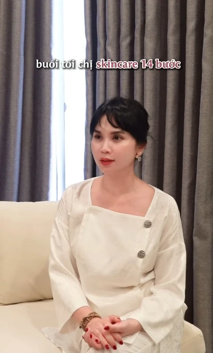 Not only possessing neat physique, businesswomen also make many people admire for their bright skin.Sharing in a video not long ago, "Sister selling rice" Linh Dang shared that: Mother was arrested by her mother from 12 years old, and the products she used that time including cleanser,Toner, cream and especially indispensable sunscreen