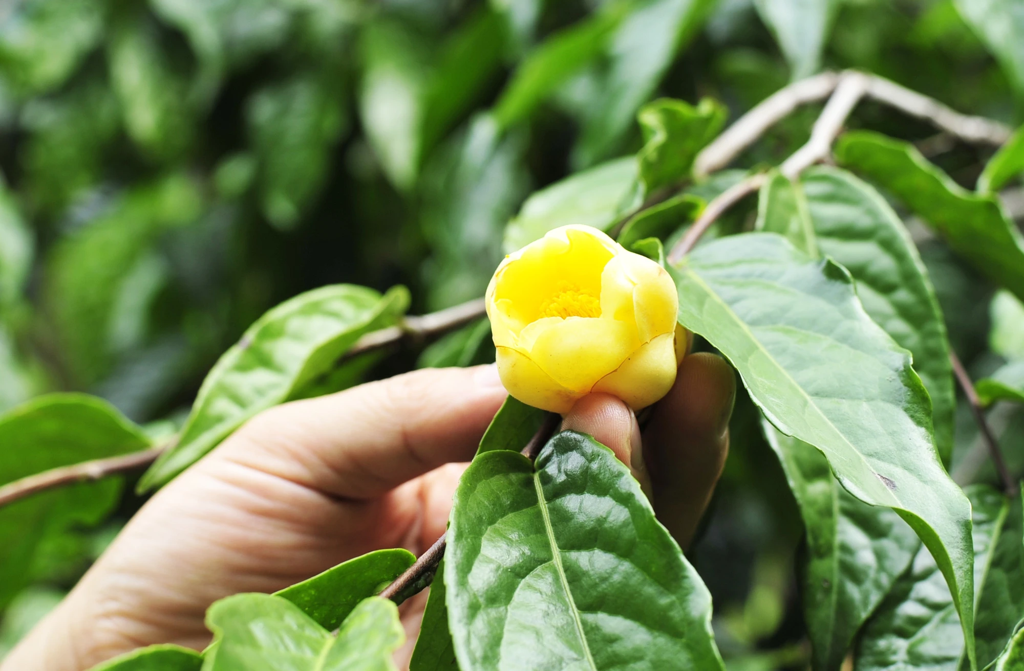 One of the plant species is tea tree (also known as tea) yellow flower is internationally named the two parts, with the full name is Camellia Cucphuongensis Ninh & Rosmans.