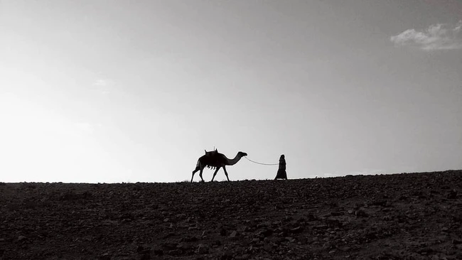 The camels go through the desert without eating and drinking
