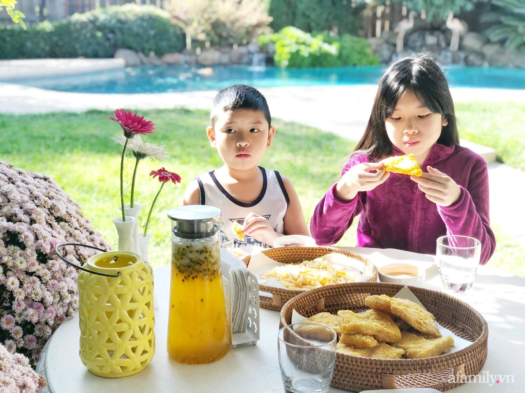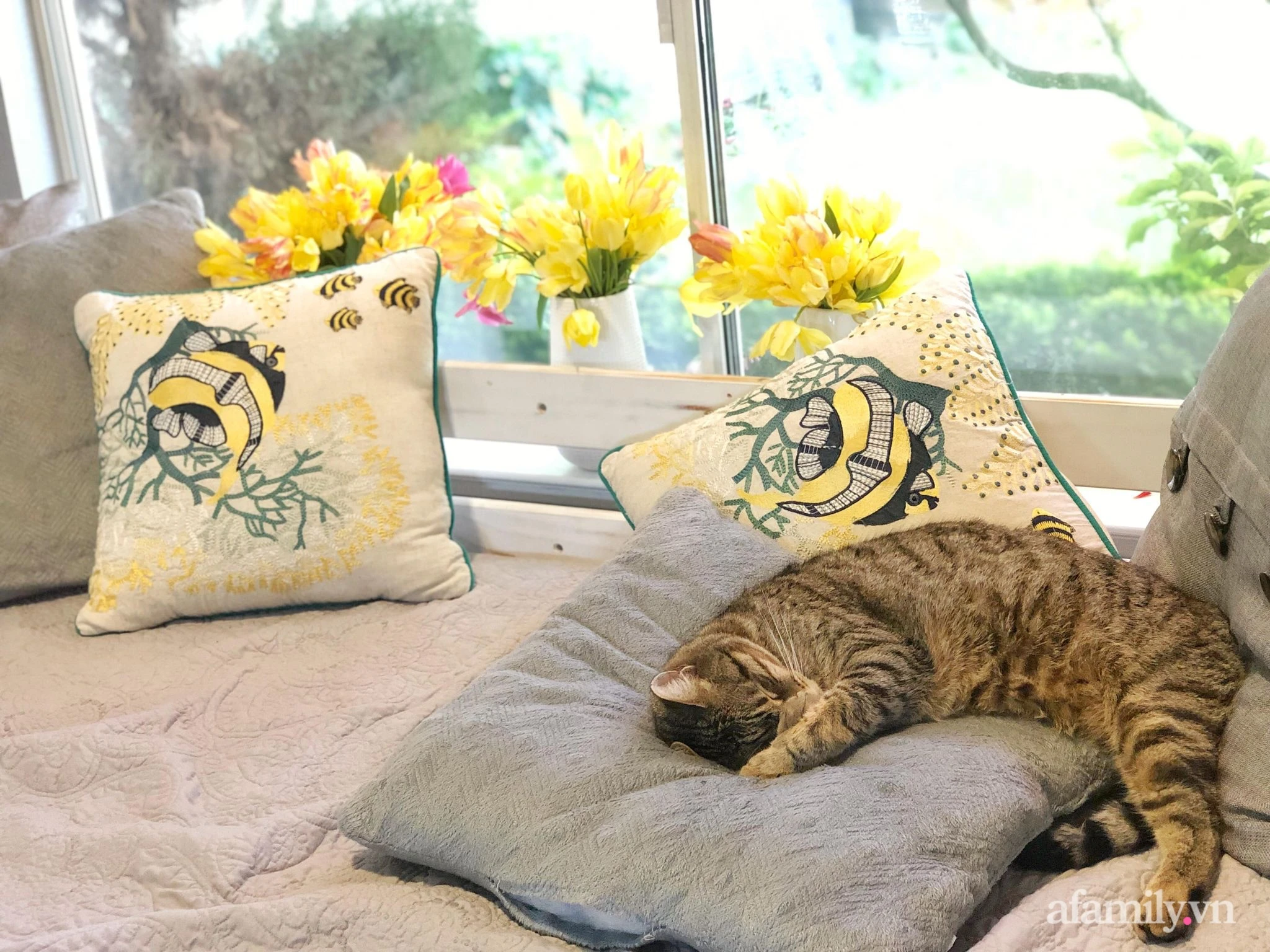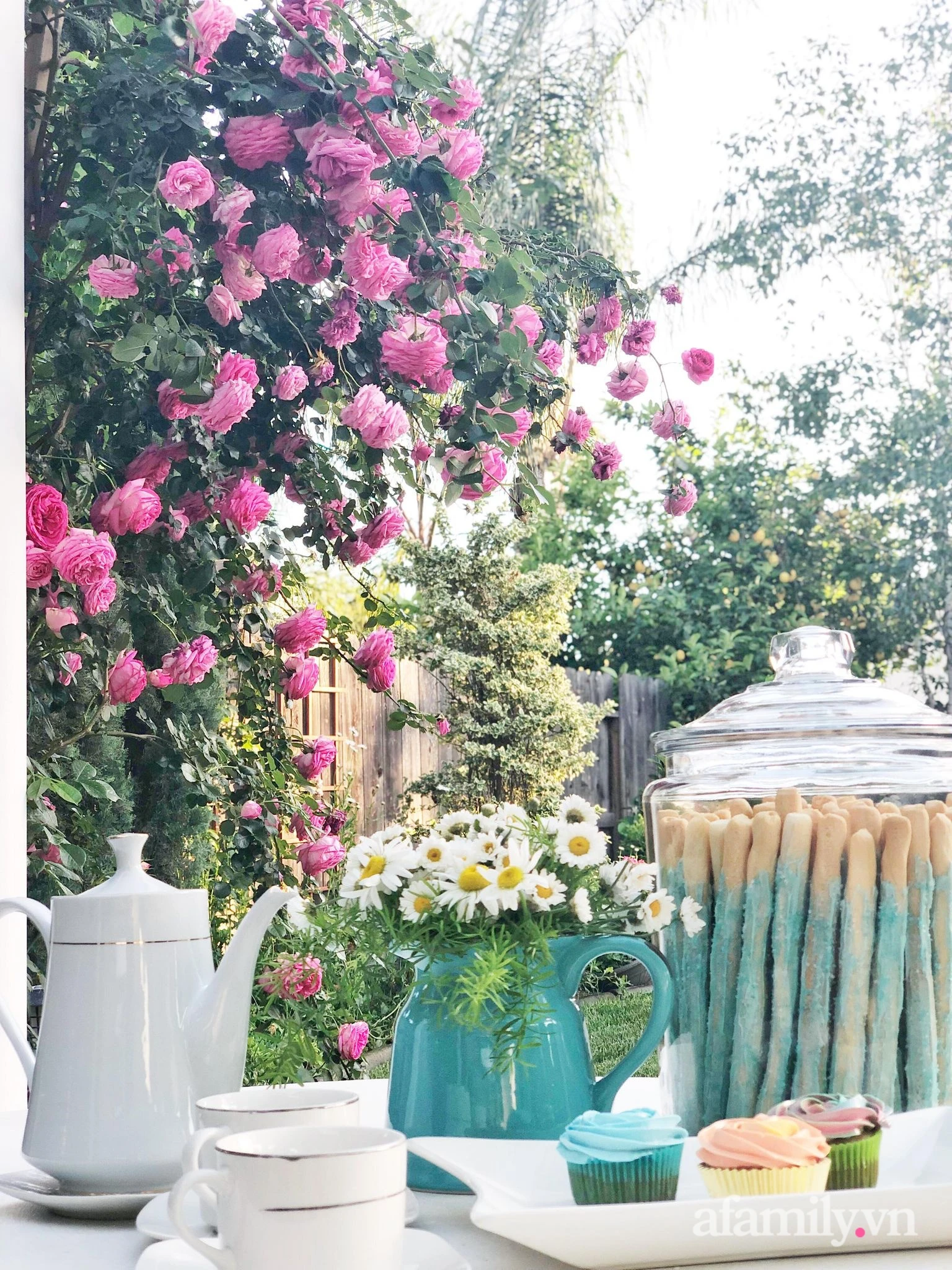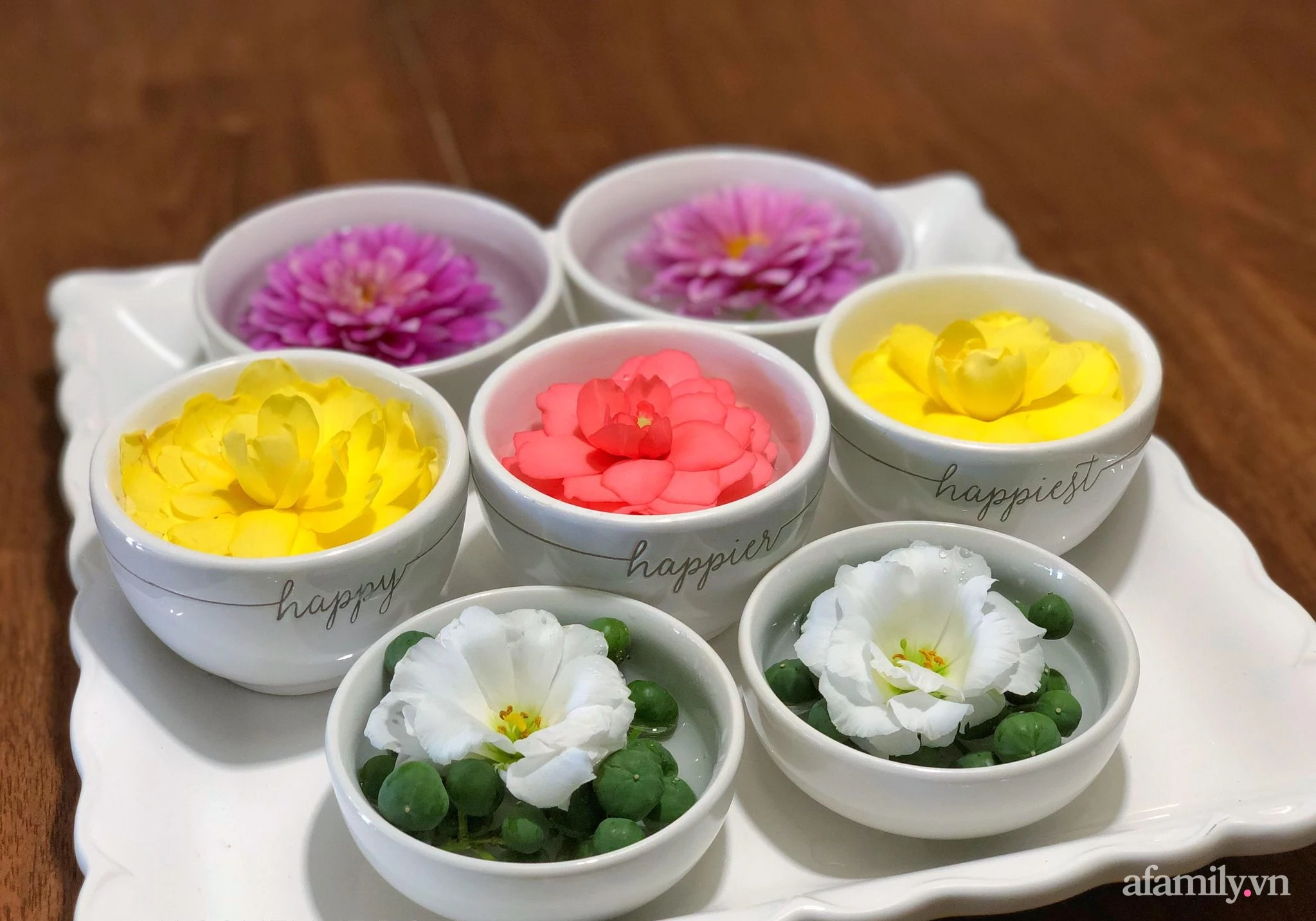 Not only owns the 800m2 garden with all kinds of flowers all year round, her skillful hands and sophisticated aesthetics also take the time to take care of the home with beautiful, beautiful vases.