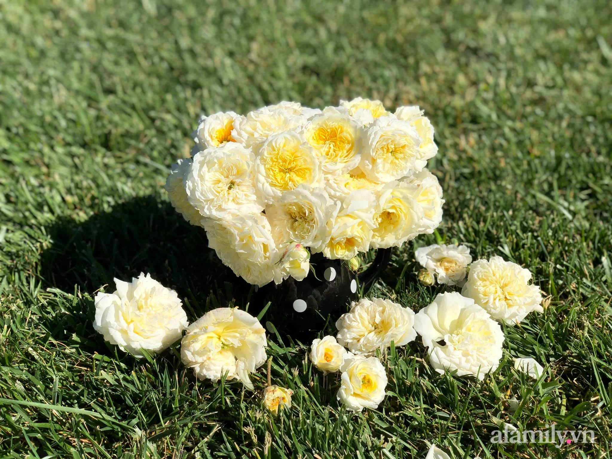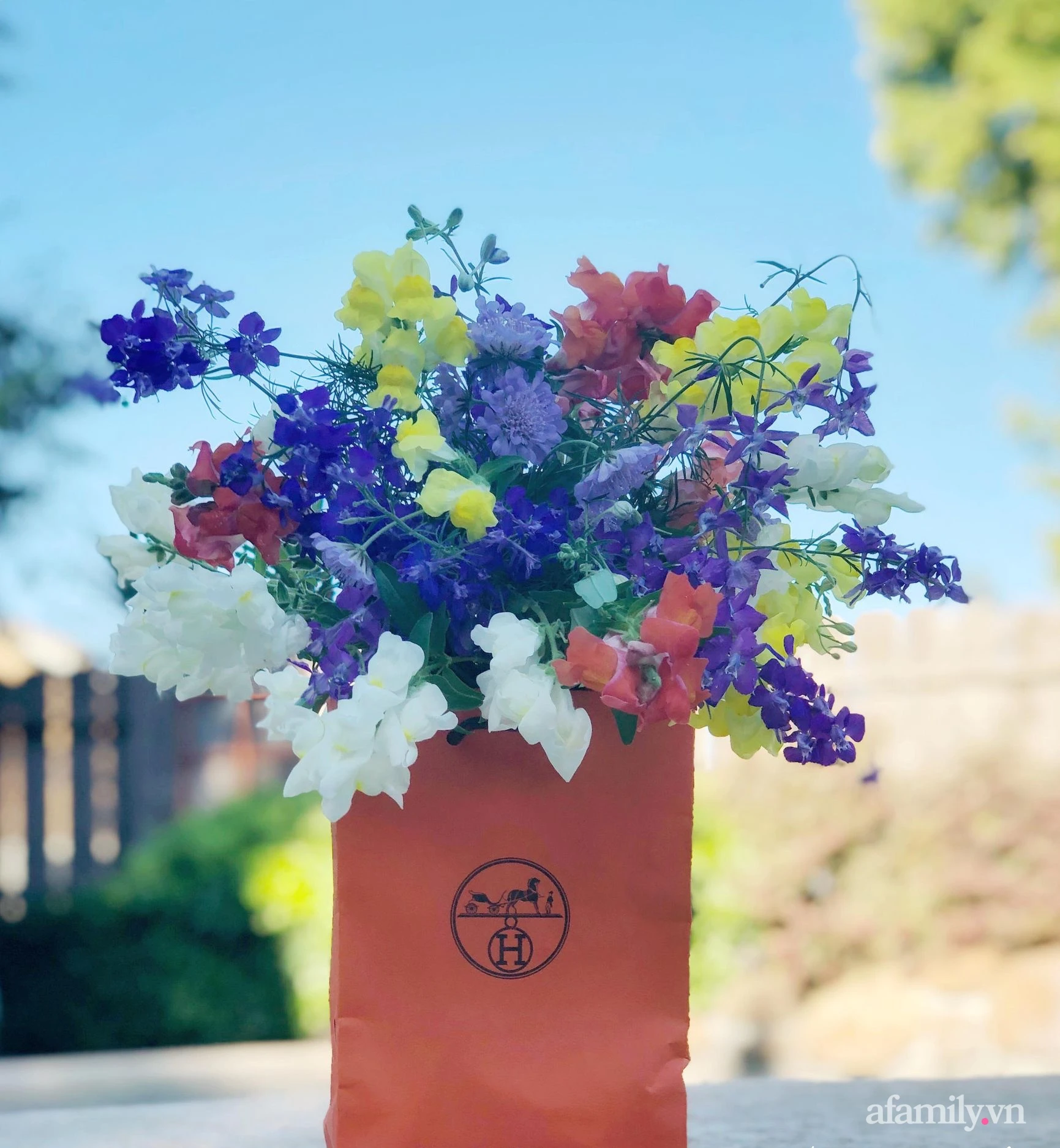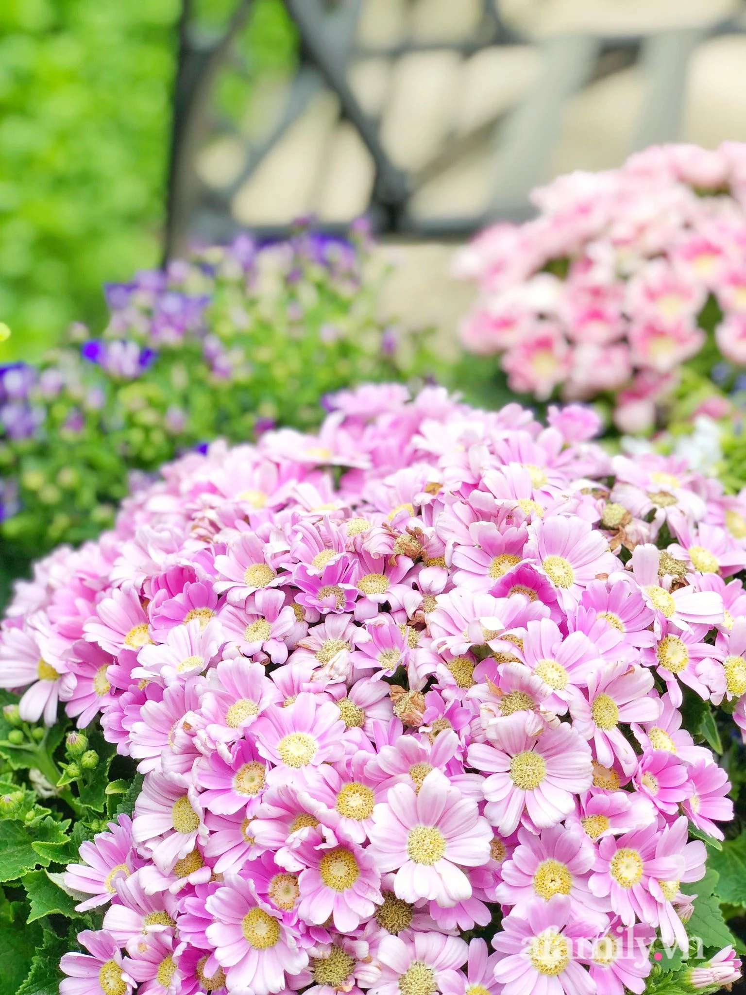 At times when flowers in the garden bloom, every corner is full of fresh flowers, even before and behind the house.Therefore, she plugged in improvisation, the flowers mix very naturally but also full of charm and impression.