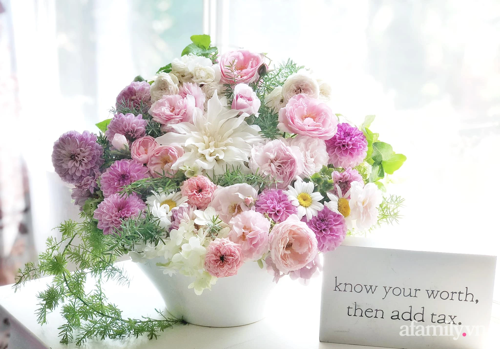 That is also the reason why she planted flowers and flower arrangements to help her living space always filled with natural colors.Growing flowers to have a beautiful house, so that the house is always flooded with fresh flowers, so that life is always full of flavor and sharpness.