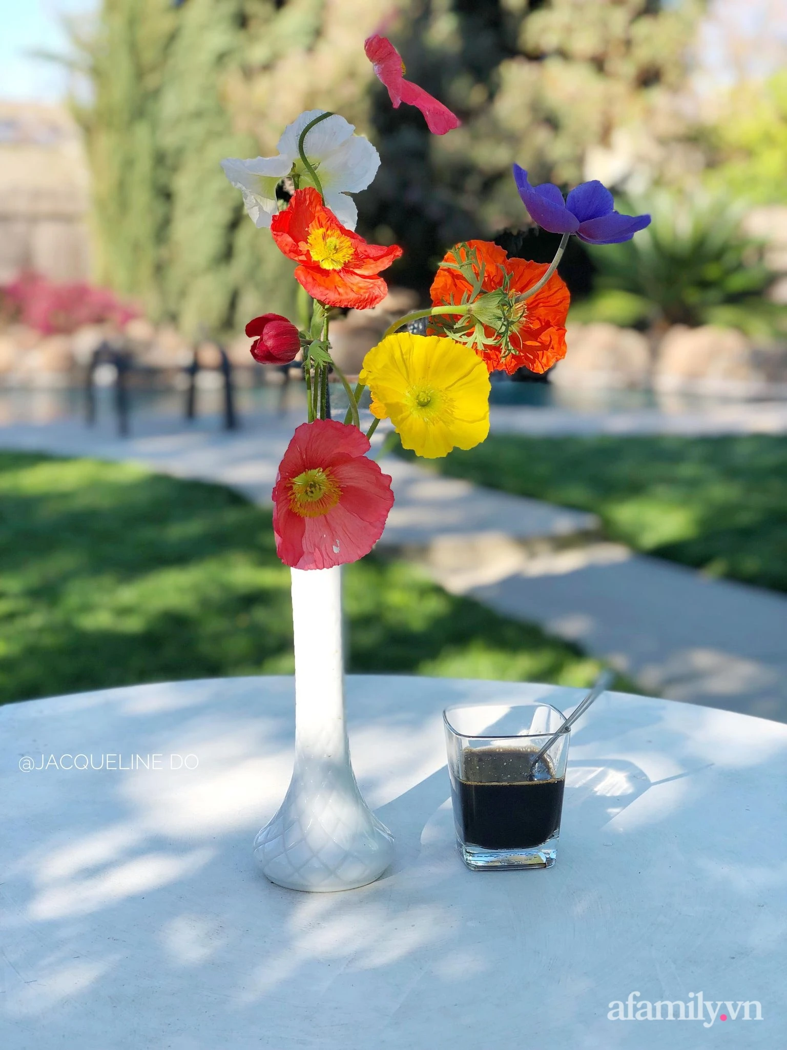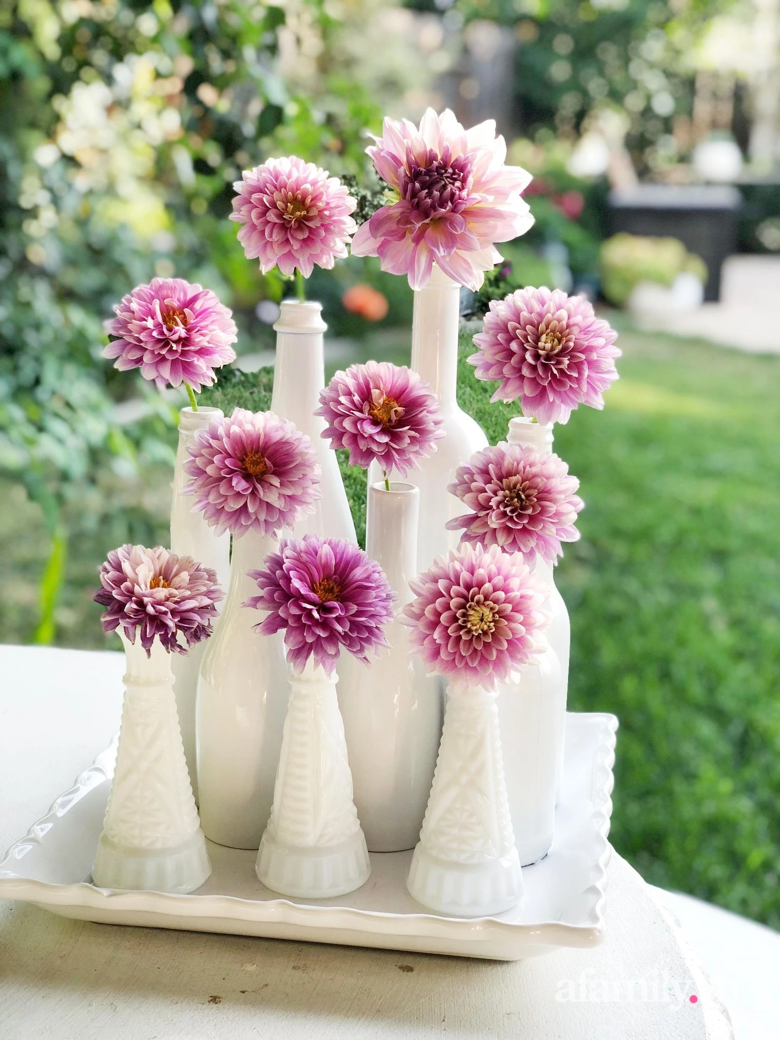 Jacqueline passed the type of person who was simple, so she often did not buy too many vases.After cutting the blooming flowers in the garden, she used what was available in the house.Sometimes paper bags are retained, put inside the water container and plug.Sometimes use cups, cup tea.Or you can take advantage of a bottle of soy sauce, washed fish sauce and spray white paint on the flower arrangement.Or maybe the bottles of alcohol have been used up.
