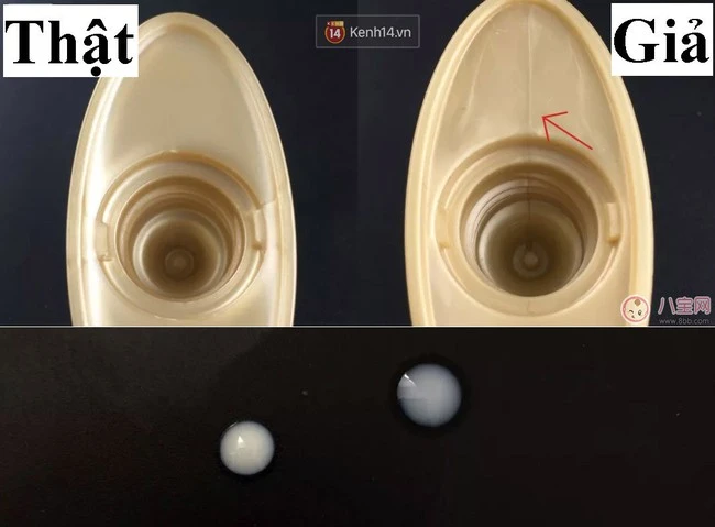 The cream of the fake vial (left) is quite liquid, when it comes to water, it will break into long, large dots.And in the real bottle (right), the cream is comparable, when the water is dissolved into small, smooth dots.