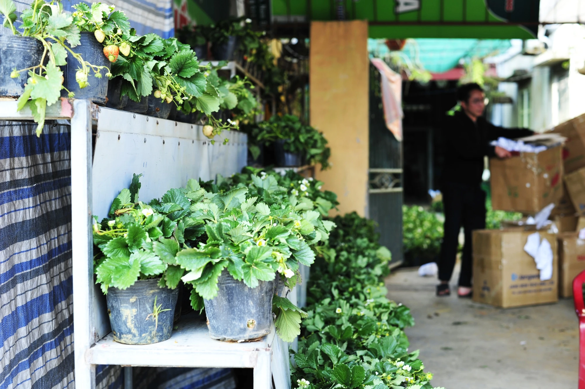 The mini tree attracts the attention of guests (the owner of the store has prepared 2 thousand strawberry plants)