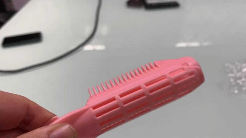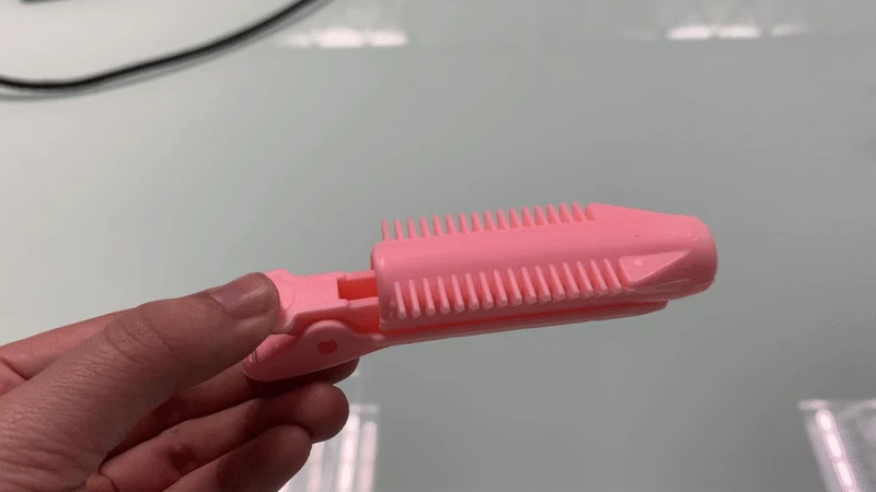 You just need to use your thumb and index finger to squeeze into the handle with a spring, helping the tongue of the hair bulge to open.Then you clamp this blade into your hair roots.