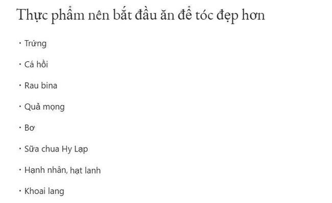 Nutrition expert Rimas Geiga pointed out why the 4 foods mentioned above are considered good for the hair of women in their 40s as follows: